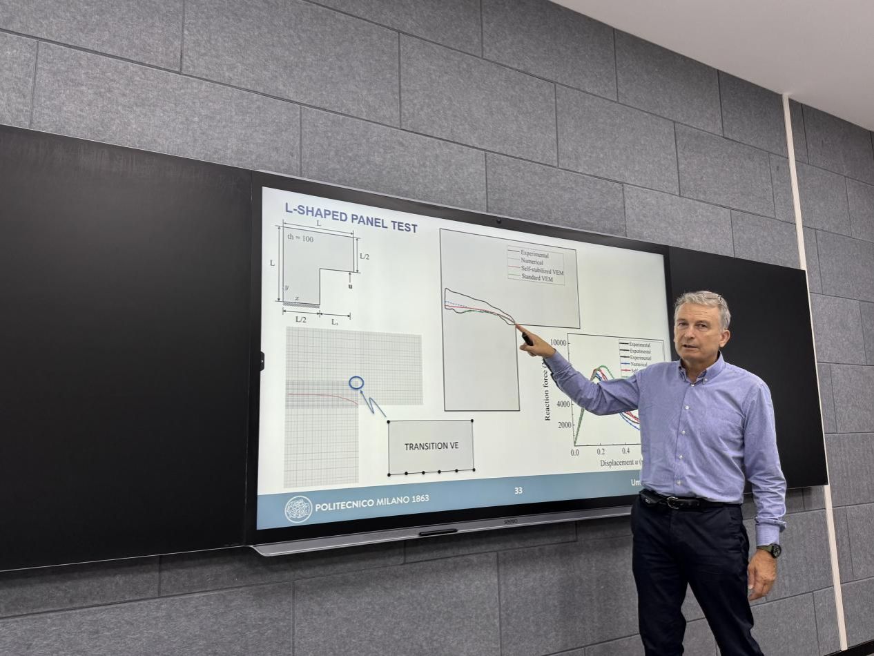 2025年10月9日,应皇冠APP下载官网邀请,米兰理工大学土木环境与土地管理工程学院Umberto Perego教授在曲江校区8-104智慧教室做题为“FEM+VEM: a new paradigm to deal with meshing problems”的学术报告。报告会由皇冠APP下载官网副院长胡义锋教授主持。
