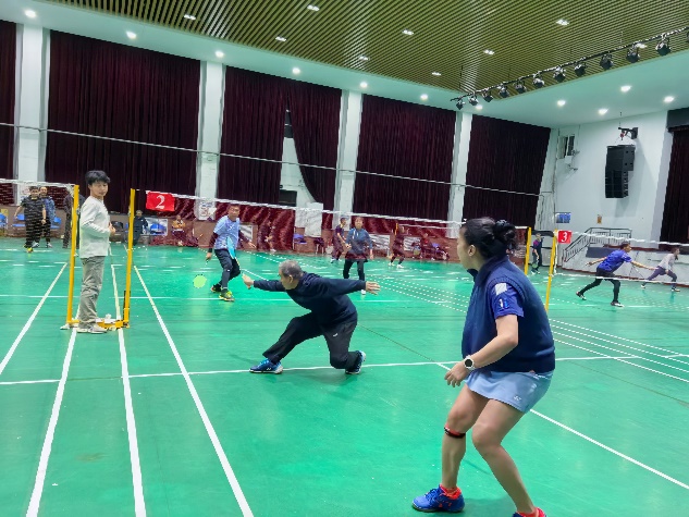 羽毛球赛场上,选手们网前扑杀、后场扣杀,攻防转换扣人心弦,赛场边欢呼不断,大家在挥拍跃动中既锻炼了身体,也加深了彼此间的交流与情谊;