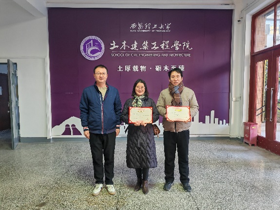 校工会副主席刘敏,院党委书记刘峰,院长赵钦,院工会主席程圣东,分别为获奖的工会小组颁发了奖状。